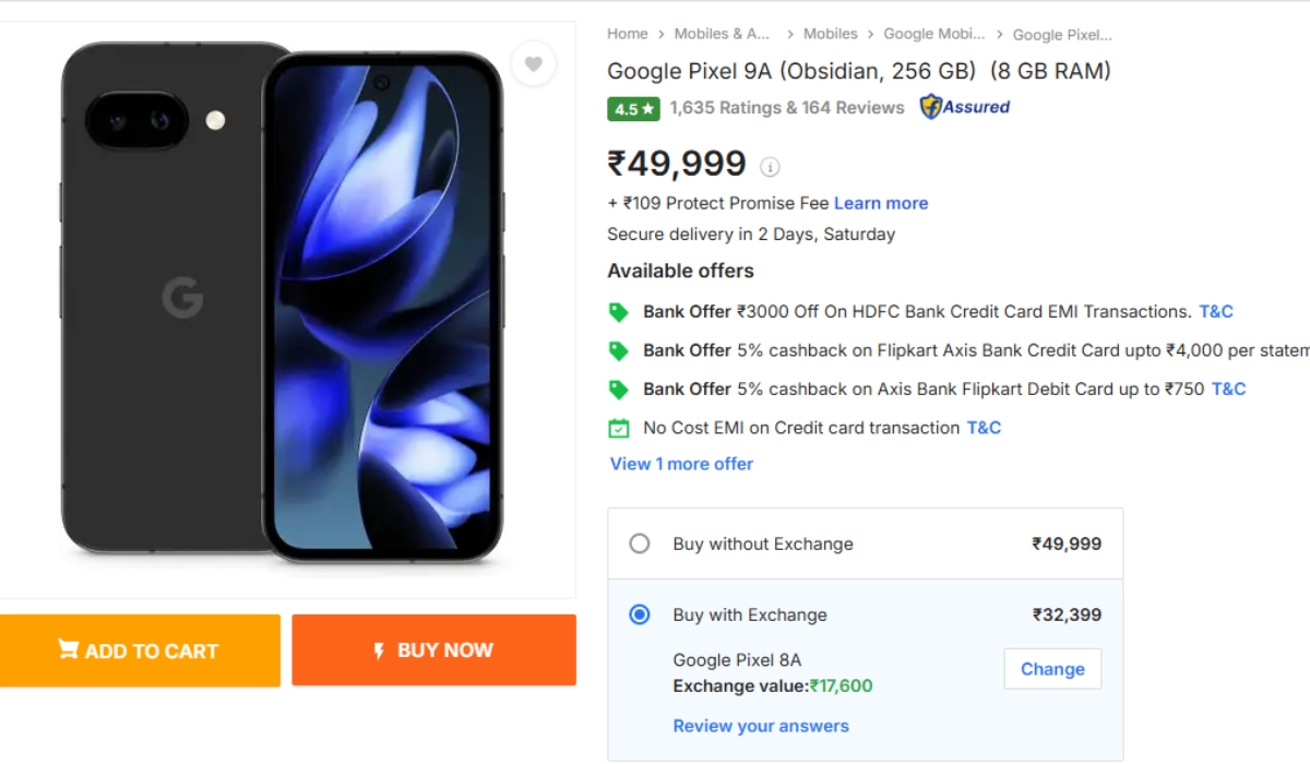Tip: To maximize your savings, exchange your Pixel 8A or a similar eligible device and combine it with the HDFC Credit Card EMI offer. You can also use Flipkart Axis Bank Credit Card for 5% cashback.
