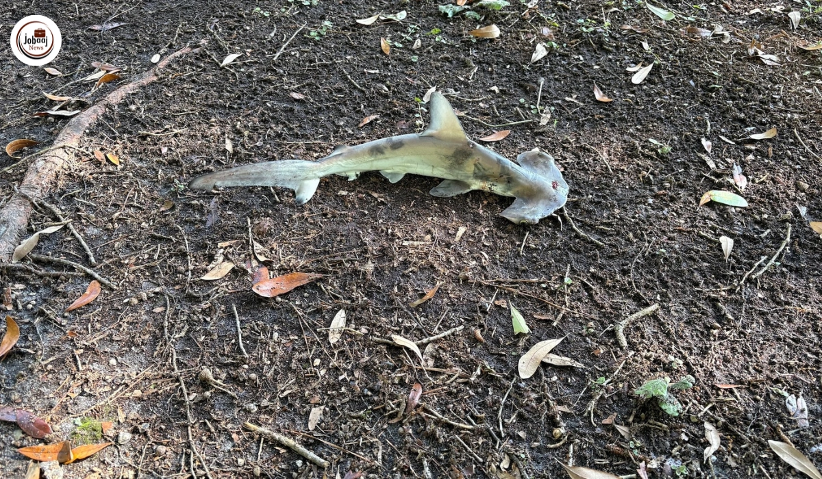 A group of disc golfers in Myrtle Beach, South Carolina, witnessed something truly surprising—a baby hammerhead shark fell from the sky and landed right in the middle of their game. The group was playing at the Splinter City Disc Golf Course when they noticed the shark on the ground. At first, they thought it was just an ordinary fish, but on closer look, they realized it was a young hammerhead shark.